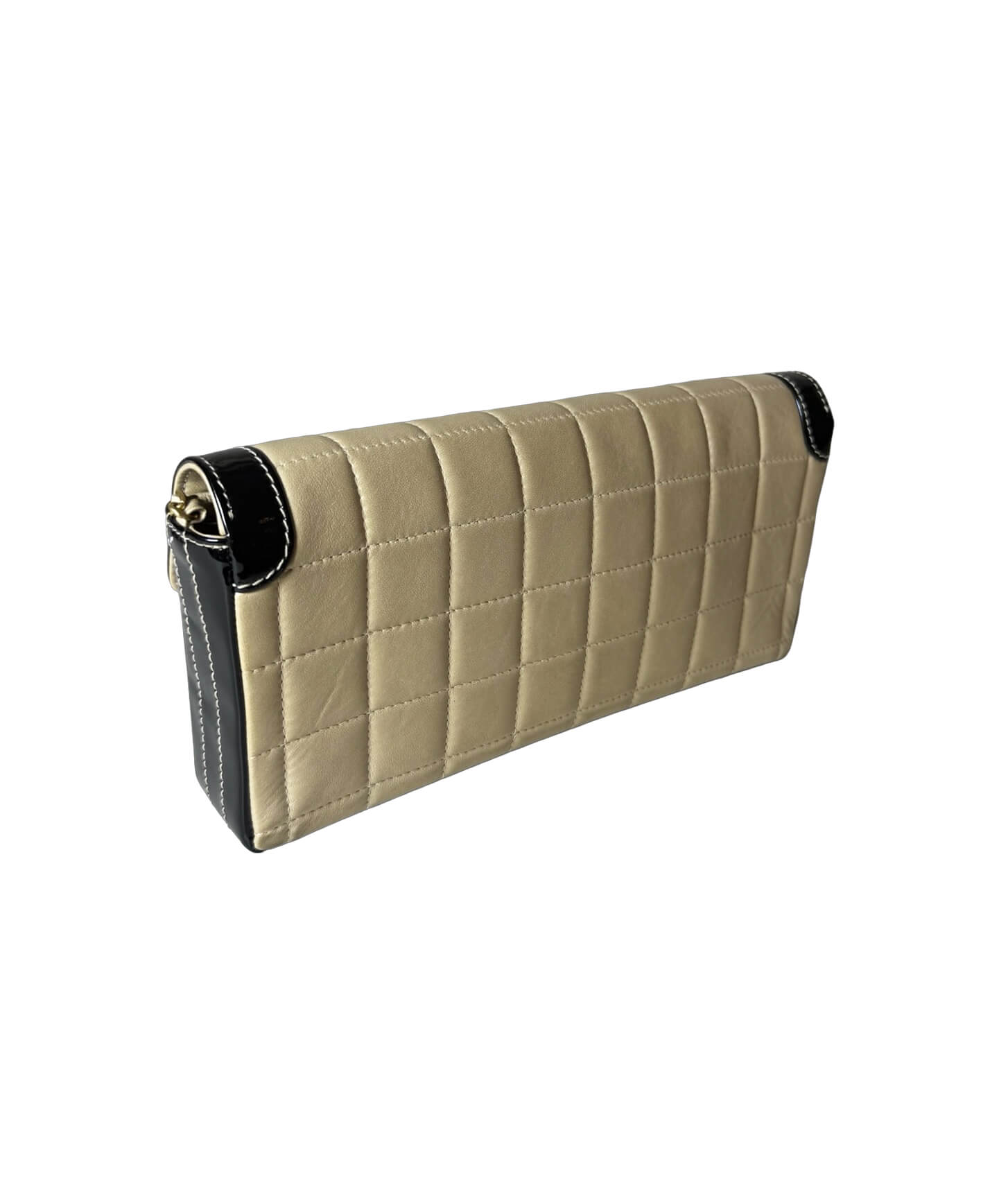 Or as low as R8,450 / month interest-free, using your existing credit card. For orders over R100.How it worksThe Chanel Small Chocolate Bar East West Flap Bag is a beautifully structured piece that captures the refined essence of Chanel’s early 2000s aesthetic. Crafted in supple beige lambskin leather with the iconic “chocolate bar” quilt pattern, this rare East West silhouette is accented with glossy black leather trim and finished with the signature gold CC turn-lock closure. The design’s sleek proportions make it a versatile statement piece — elegant enough for evening yet understated for daywear. The chain and leather interwoven strap allows for shoulder or clutch carry, while the flap opens to a compact yet functional interior for daily essentials. A collector’s dream and a perfect choice for those who adore vintage Chanel craftsmanship and timeless Parisian allure.